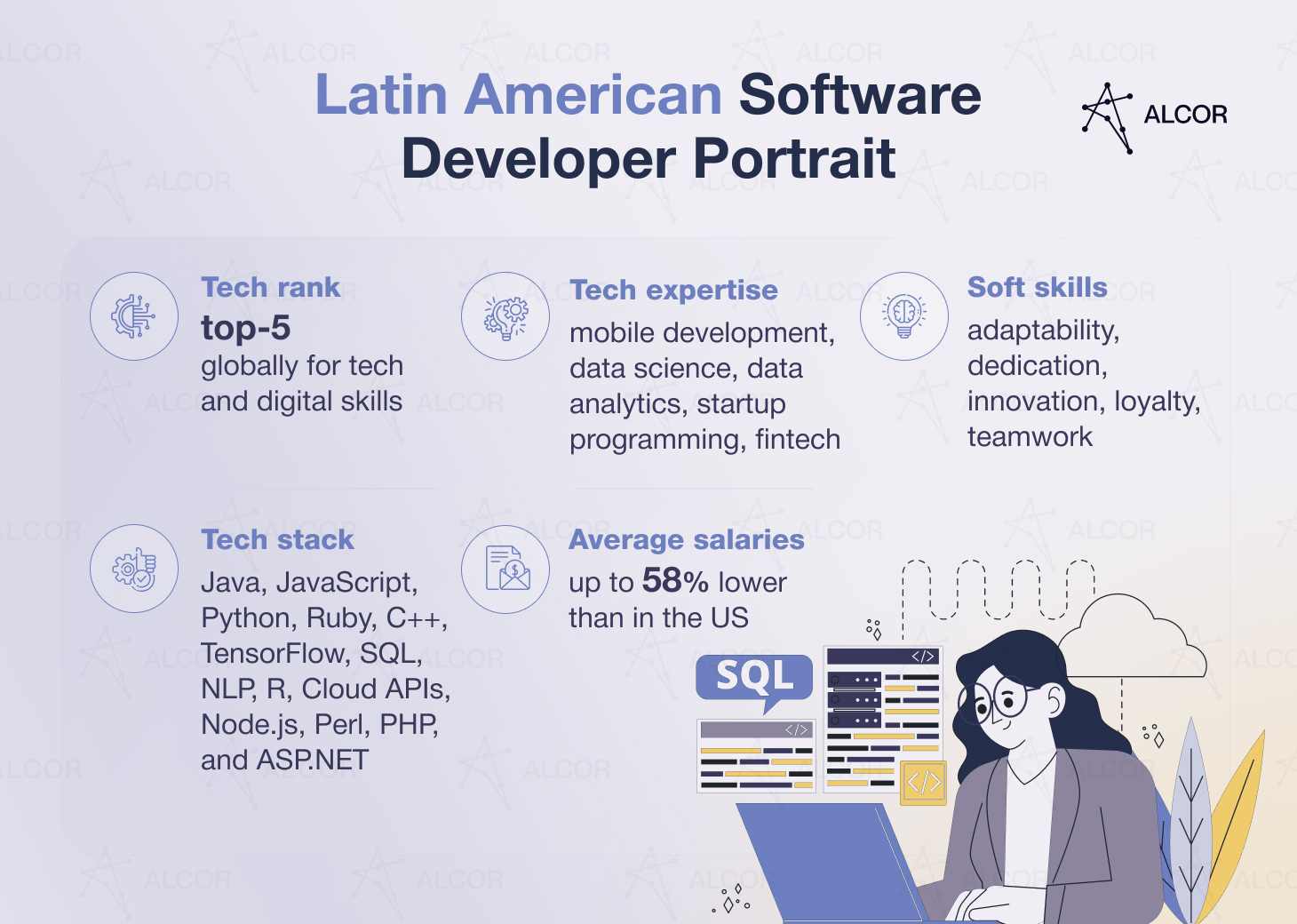 • Business culture: Software engineers in Latin America embrace a familiar work culture, demonstrating proficiency in both collaborative efforts and independent tasks. They show a high degree of dedication, going the extra mile for the success of your product.